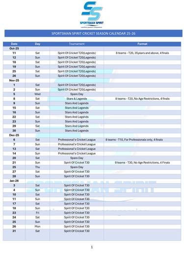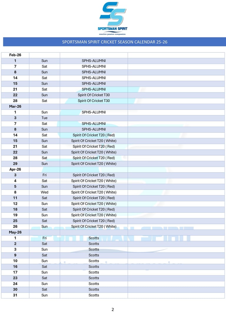 Sportsman Spirit Cricket Calendar 25-26